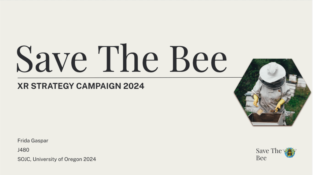This individual student project for J480 New Tech in PR leverages AR experiences and social media strategies to engage Gen Z in bee conservation. By addressing their concerns and promoting authentic self-expression, the campaign aims to inspire meaningful action and foster environmental stewardship among a digitally savvy and diverse generation. Check out the campaign here.